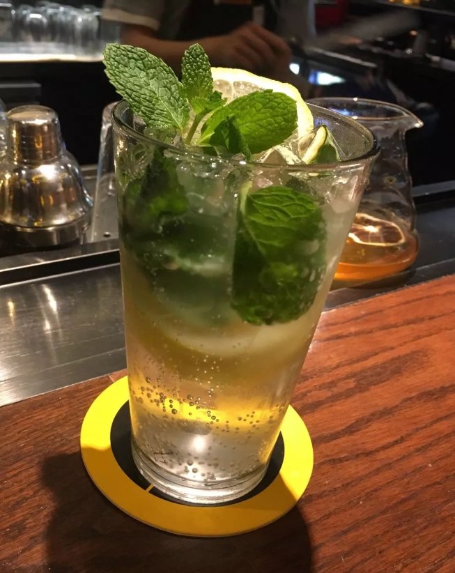 新鲜薄荷叶、柠檬片(青柠檬、香水黄柠檬)、苏打水、冰块